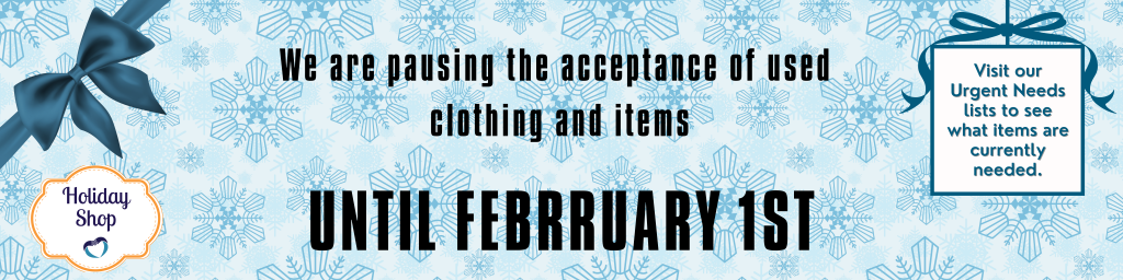Please be aware that we have limited storage capacity and may need to decline certain donations. If we are unable to accept your donation, we would be glad to provide you with a list of other local organizations that may benefit from it.