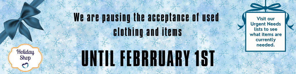Please be aware that we have limited storage capacity and may need to decline certain donations. If we are unable to accept your donation, we would be glad to provide you with a list of other local organizations that may benefit from it.